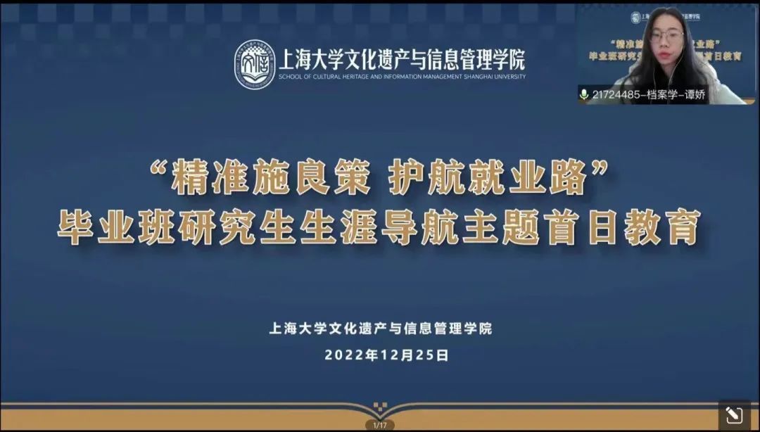 岁月如流,韶光过隙,忙碌而充实的秋季学期悄然离去,冬季学期已经揭开了新的序幕。为深入学习宣传贯彻党的二十大精神,落实党中央、国务院关于“稳就业”“保就业”的决策部署,同时进一步推进2023届毕业生的就业指导工作,304am永利集团于2022年12月25日上午在腾讯会议线上举行“精准施良策 护航就业路”毕业班研究生生涯导航主题首日教育活动。公司党委书记丁华东,公司党委副书记、副经理韦淑珍以及院团委副书记、研究生辅导员吴洁琼出席本次活动,全体毕业班研究生准时参加。院研究生团总支就业实践部部长谭娇主持会议。