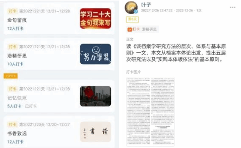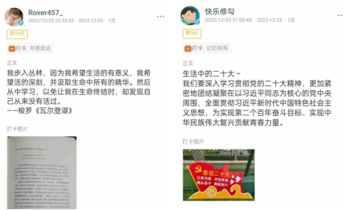 学有所思,学有所获。为促进公司研究生团员深刻领悟党的二十大报告内涵,积极发现生活周边党的二十大新图景,公司研究生党总支与研究生团总支共同策划“公司研究生情暖冬日打卡活动”。此次活动共分为“记忆快照”、“金句留痕”、“书香致远”和“潜精研思”四个板块,参与人数高达84人,打卡130余次。通过留言打卡的方式,营造公司研究生团员对党的二十大精神全面覆盖学、深入思考学和联系实践学的氛围,在互动体验、潜移默化中深入推动党的二十大精神落地生根。