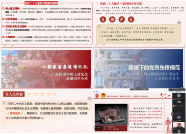 党的二十大报告是党带领全国各族人民夺取中国特色社会主义新胜利的政治宣言和行动纲领,内涵丰富,意义重大。为推动公司研究生团员感悟党的二十大精神,公司研究生联合团支部以团总支带头领学、团支部积极促学和团员常态自学“三级联动”方式带动公司全体研究生团员观看党的二十大视频,学习党的二十大报告,并在线上云端会场召开“学思践悟二十大,奋楫扬帆启新程”主题团日活动,通过开展解读党的二十大精神、举办知识答题竞赛、分享优秀人物事迹、介绍志愿服务经历和红色文物趣味答题等活动,推动全体研究生团员深入学习党的二十大精神,促进党的二十大精神入脑入心,躬身践行。