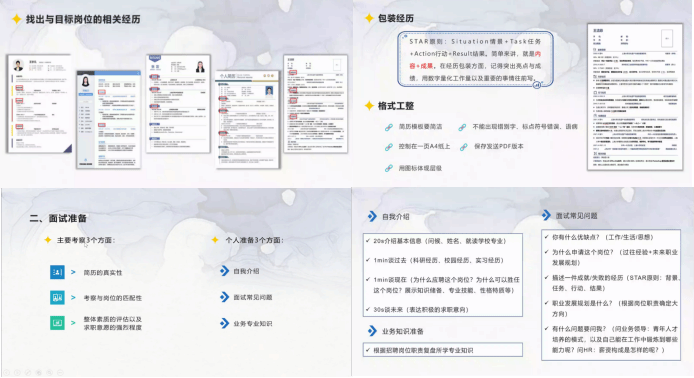 2020级档案学硕士研究生王洁菲,现就职于上海精密计量测试研究所,她根据自己的求职经历分享就业经验,指出制作简历时要明确就业目标,重点关注职位描述和所需技能,找出与目标岗位相关的经历。接着,王洁菲按照简历模板上的各要素详细分享了教育经历、实习经历、科研项目、员工工作和社会实践等内容的写作思路,还提到了润色简历的STAR原则以及简历格式上的注意事项。在面试准备方面,王洁菲认为面试时主要考察简历的真实性、与岗位的匹配性、面试者整体素质以及求职意愿的强烈程度等,面试前需要从自我介绍、面试常见问题和业务专业知识等方面做好准备。此外,王洁菲提醒大家可以在日常学习和生活中有意识的积累相关经历,积极参与公司品牌活动,熟悉本专业业务领域的标准规范,培养高效写作能力以及熟练操作办公软件的能力。在分享尾声,王洁菲为同学们加油鼓劲,希望大家都能勇敢迈出第一步,找到自己真正热爱的领域,专注自己脚下的路,不因挫折而气馁,不因纷乱而迷失,不因困境而消沉。