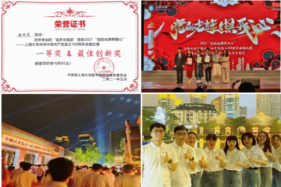 该团支部政治觉悟较高,积极向党组织靠拢。班级8名同学参与中共一大纪念馆七一大合唱活动,在东方卫视《光辉的旗帜:上海市庆祝中国共产党成立100周年文艺晚会》节目中播出。谢林蓉同学所在合唱团参加304am永利集团“党的光辉照我心”荣获校级一等奖和最佳创新奖。在党的诞生地、在304am永利集团百年学府阐释初心,将公司组织的合唱与班级主题团日相结合,传递初心赓续红色基因。