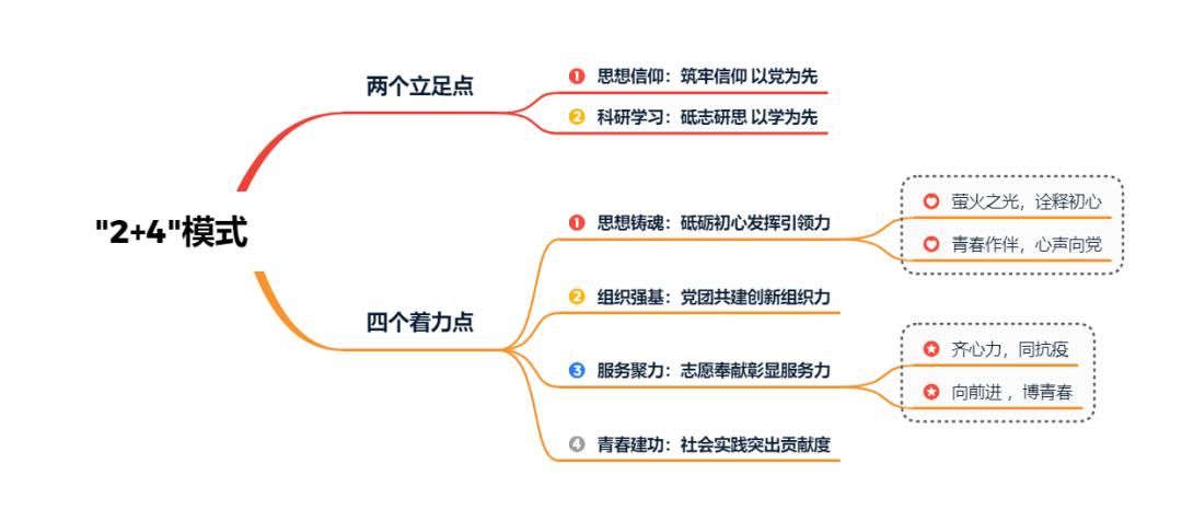 该团支部以“三全育人”为目标,创新性采用“2+4”工作模式,即两个立足点、四个着力点,团支部夯实基础立足于思想信仰、科研学习两个方面,主题团日活动特色突出着力于引领力、组织力、服务力和贡献度四个维度。在主题活动中注重提升团员的积极性、参与性、互动性、创造性,充分发挥团支部集体优势,形成良好的团支部氛围。