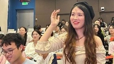 口耳相传,递送祝福。口号简短却有力量,振奋人心,催人奋进。本次团日活动设置“大运会口号传递”环节,每次5位同学上台,以“传话接力”的形式展开,逐一传递。挑战失败,则推举参赛中2位同学参与“手印画”活动,留下青春印记。通过一句句口号的传递,参赛同学感受到体育赛场的激烈氛围,汲取到拼搏向上的精神力量,激励着文信学子攻坚克难、奋勇拼搏,鼓舞着青年团员劈波斩浪,一路向前,为祖国的美好明天而不懈奋斗。