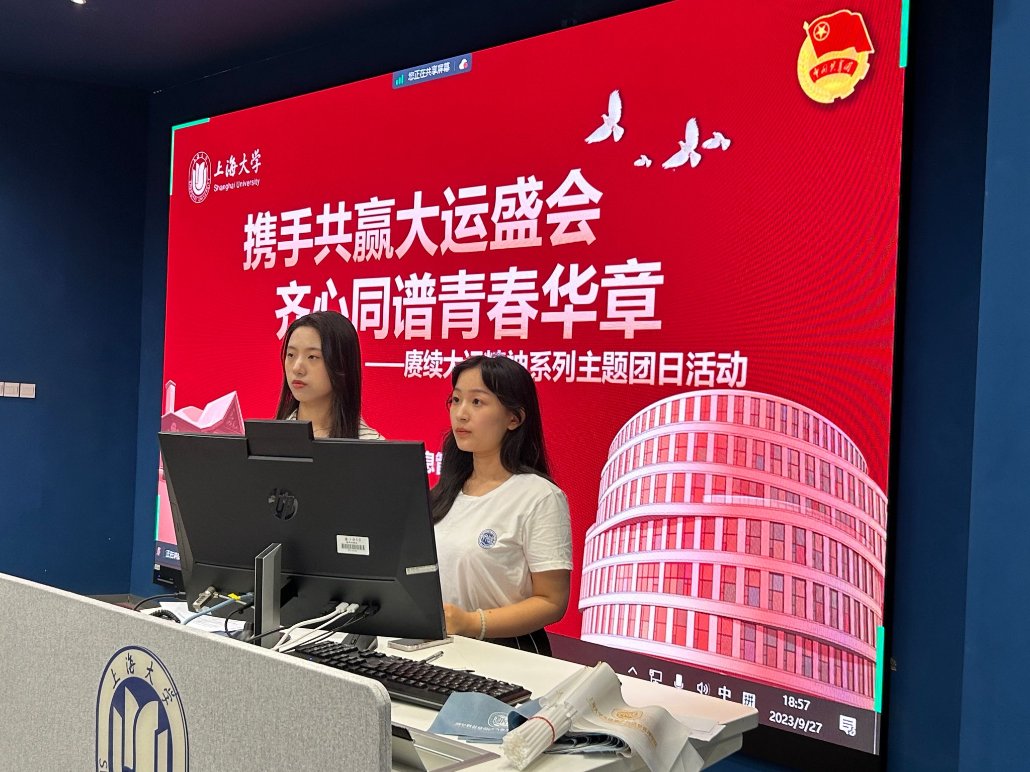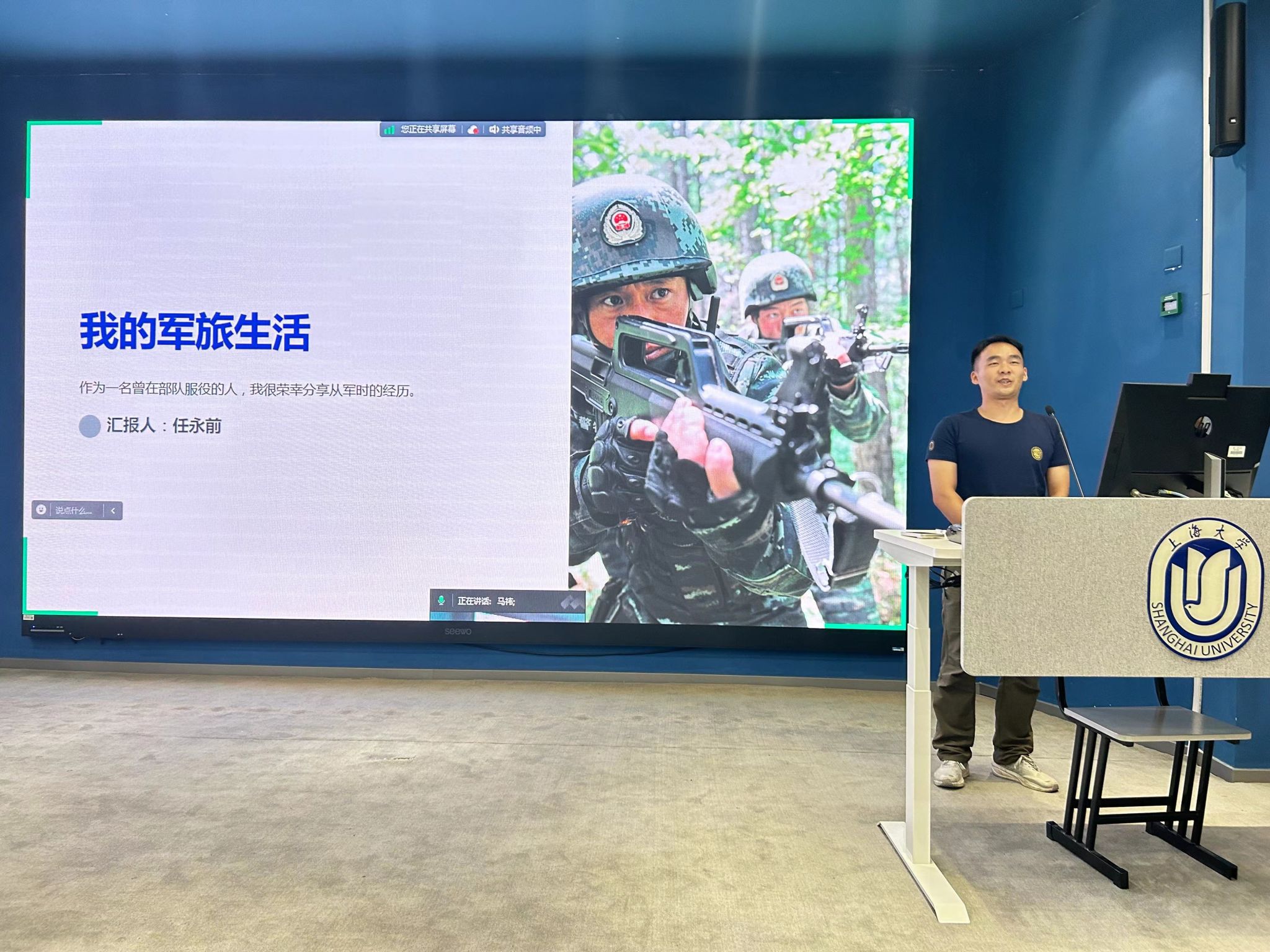 中秋华诞,长乐未央。为赓续大运荣光,深入贯彻学习习近平总书记2023年7月28日在成都第三十一届世界老员工夏季运动会开幕式欢迎宴会上的讲话精神,激励青年团员发扬迎难而上、敢于拼搏的运动员精神,公司研究生团总支于2023年9月27日晚19:00在嘉定校区第二教学楼211室举办“携手共赢大运盛会,齐心同谱青春华章”——赓续大运精神系列主题团日活动。本次活动邀请2023级图书情报硕士研究生、退伍军人任永前、张睿珂分享军旅生活经历。会议由2023级情报学硕士研究生王一诺和2023级图书情报硕士研究生马祎主持。