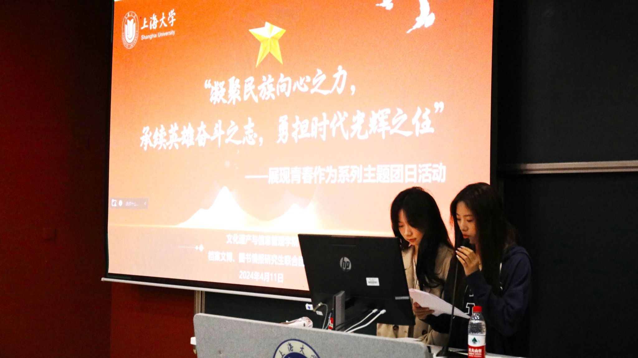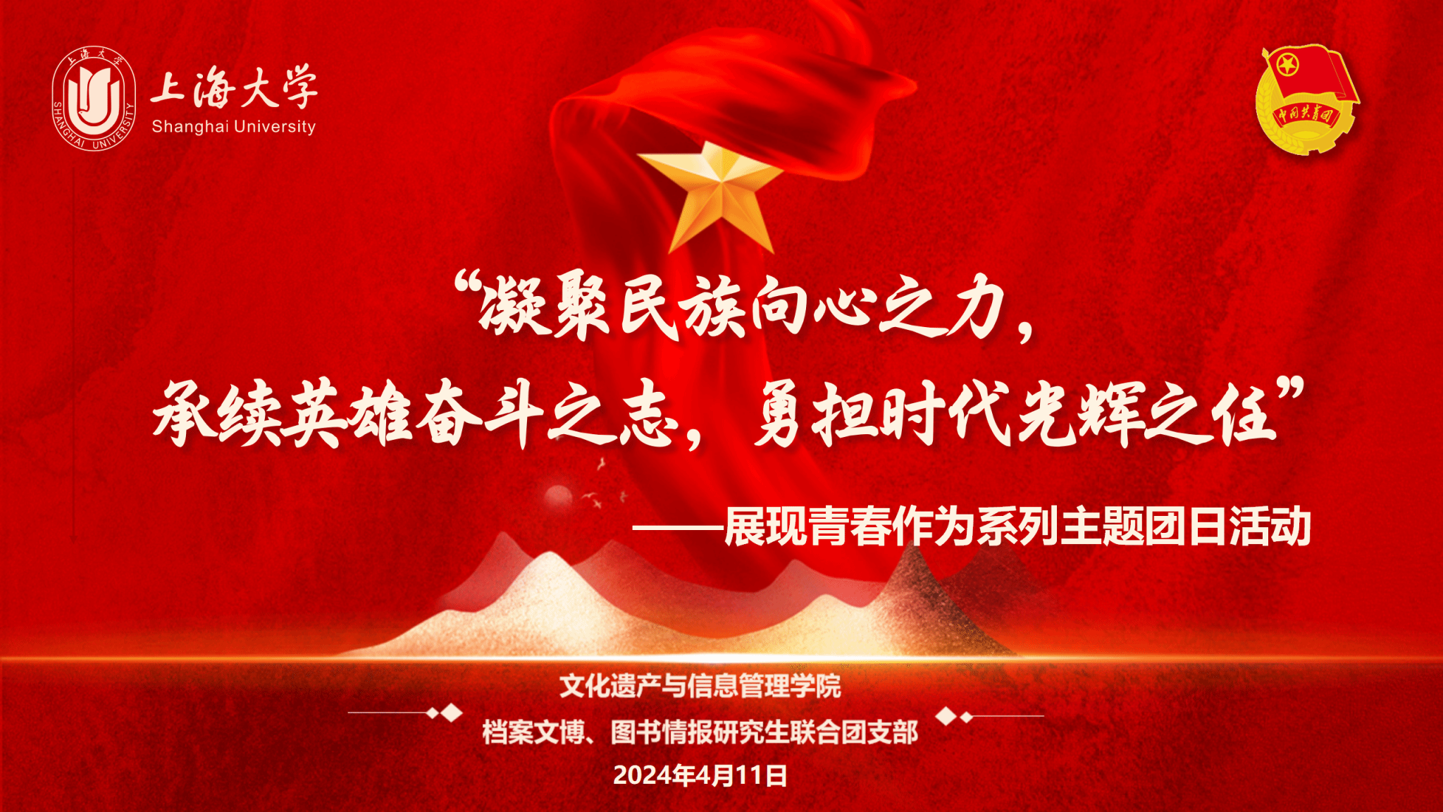为深入贯彻学习中华人民共和国第十四届全国人民代表大会第二次会议和中国人民政治协商会议第十四届全国委员会第二次会议精神,提升公司研究生团员理论素养,促进文信研究生青年研思笃行,引领并动员文信研究生学子争当“五个模范”、做到“五个带头”,304am永利集团档案文博、图书情报研究生联合团支部于2024年4月11日晚18:30在嘉定校区第二教学楼112室举办“凝聚民族向心之力,承续英雄奋斗之志,勇担时代光辉之任”——展现青春作为系列主题团日活动。本次活动邀请2023级档案学硕士研究生黄信翔和2023级图书情报硕士研究生梁轩分享志愿活动经历。活动由2023级情报学硕士研究生王一诺和2023级文物与博物馆硕士研究生张绮娴主持。