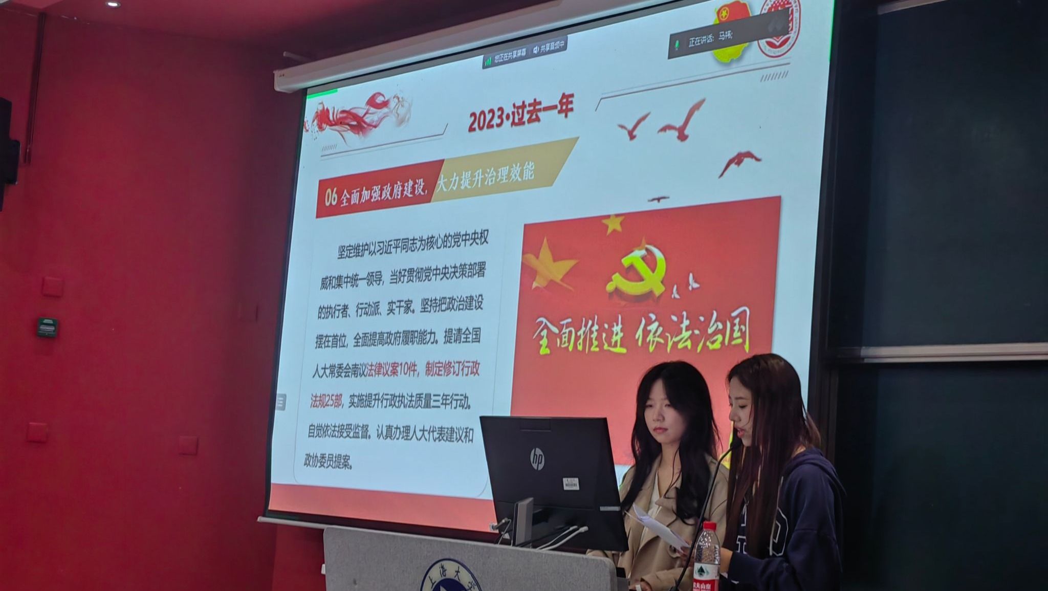 公司研究生通过观看新华网发布的2024年全国“两会”宣传视频,回顾2023年国家发展优异成绩,明确2024年政府工作十大任务,从而对国家发展走向有了清晰的认识,对青年使命担当有了深切的体会,激发起文信研究生学子拼搏向上的昂扬斗志和攻坚克难的无畏精神。