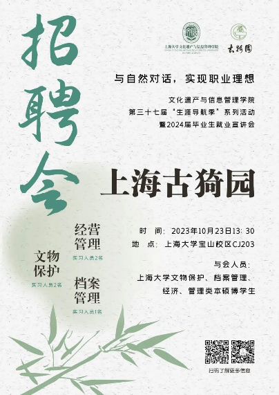 为拓宽同学们的就业渠道,缓解就业压力,实现充分就业,公司积极与各类企事业单位建立紧密的合作关系,于2023年10月23日举办了与自然对话,实现职业理想——2024届毕业生就业宣讲会暨“生涯导航季”系列活动之上海古猗园专场招聘会。招聘会期间,通过现场宣讲和互动交流,为文信学子提供了卓越的就业平台和宝贵的职业机会,加强了公司与企事业单位之间的深度合作。相信在多方共同努力下,同学们可以顺利地踏上自己的职业发展之路。
