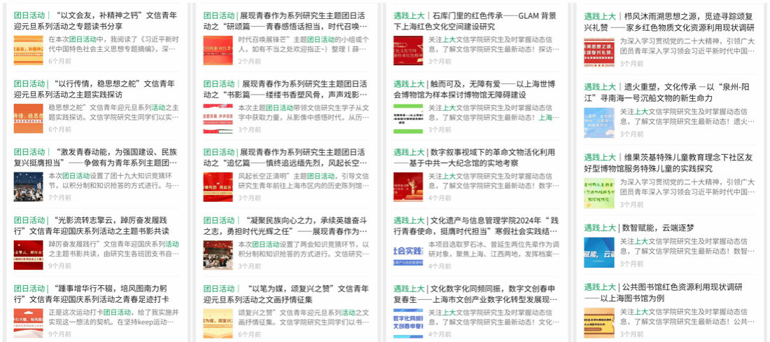 ​公司研究生团总支宣传部担任着向内传播​304am永利集团团总支最新动态和向外展现​304am永利集团团员精神风貌的重要角色,始终保持坚定的政治立场,紧密结合团员的真实需求,致力于打造一系列高质量的宣传内容。过去一年以来,​公司研究生团总支宣传部共发布100篇推文,除定期推送团日活动动态、就业信息,并配合访企拓岗、就业宣讲会的宣传推送工作外,创新性推出“遇践上大”、“向前进 博青春”等系列推文,获得20,114次的总阅览量,累计用户达到3,417人,在积极展现​公司研究生团员青春风貌的同时,公司的影响力也得到了进一步的扩大。