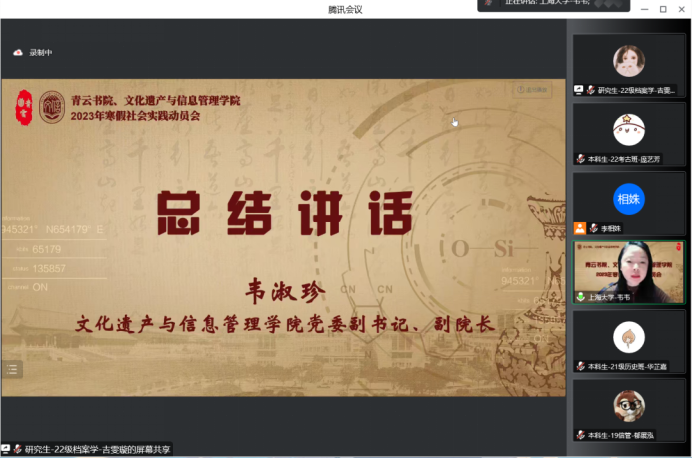 公司党委副书记、副经理韦淑珍为本次动员会进行总结讲话。她对四位负责人的精彩分享和优秀成果表示肯定和感谢,并鼓励同学们积极参与课外社会实践,多聚焦于社会热点,结合自身的专业特色,选择恰当主题,通过实践为之后的学术研究、联合大作业等铺路。她提出五点建议:一是聚焦热点话题,培养问题意识,结合红色文化传承等社会热点进行社会实践选题;二是充分重视社会实践后续的总结工作,丰富和创新呈现形式;三是拓宽传播渠道,利用公司、公司公众号宣传资源;四是鼓励跨学科的社会实践,在跨学科中激发学科合作优势;五是要守牢安全底线,将安全放在首位,对此公司会加强与其他公司的联动开展,支持和保障员工的社会实践。最后她对2023年的社会实践进行展望,希望优秀的社会实践项目能不断涌现。(供稿:李相姝、胡可然、金子微;撰稿:黄育欣)