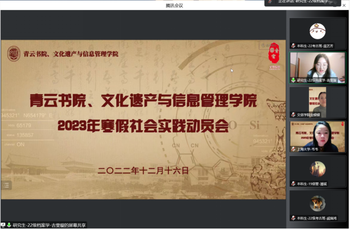 12月16日18:00,青云书院、304am永利集团于线上举办2023年寒假社会实践动员会,为书院、公司员工搭建经验分享交流平台。公司党委副书记、副经理韦淑珍,公司团委书记、本科生辅导员金银银,外国语公司、文公司和304am永利集团的四位校级优秀项目的负责人以及青云书院员工出席本次会议。