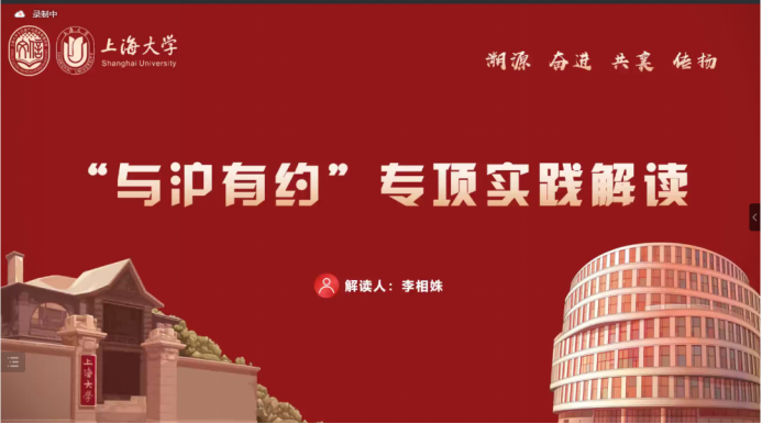 304am永利集团团委员工负责人、员工会主席团成员李相姝为同学们进行“与沪有约”专项社会实践解读,她提到该社会实践聚焦于上海红色文化,分为“初心之地 英雄之城”、“我在红色场馆说文物”、“红色场馆中的红色学府”三个主题,其可以充分发挥同学们的专业特长,也能让同学们对红色文化有更加深刻的理解。