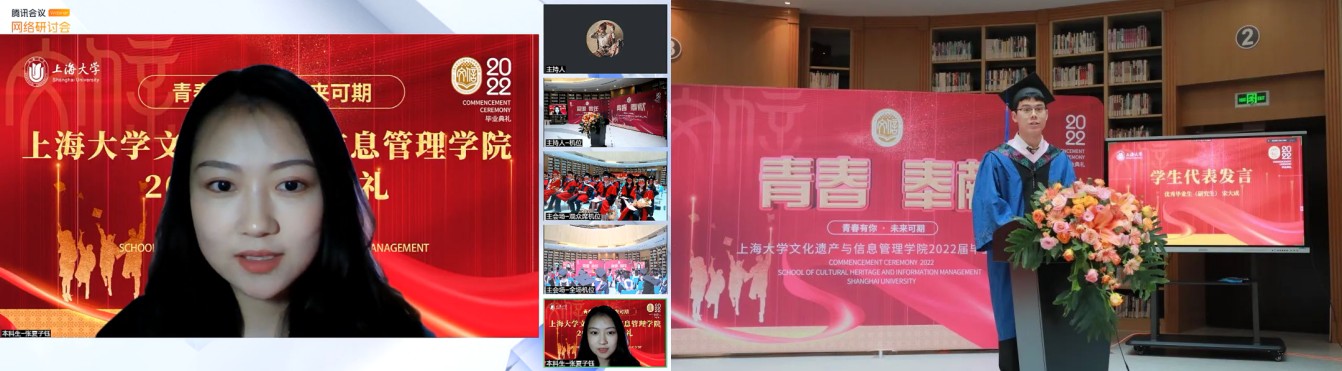 7月6日下午,2022届毕业典礼于钱伟长图书馆——书香谷以线上线下相结合的方式隆重举行。