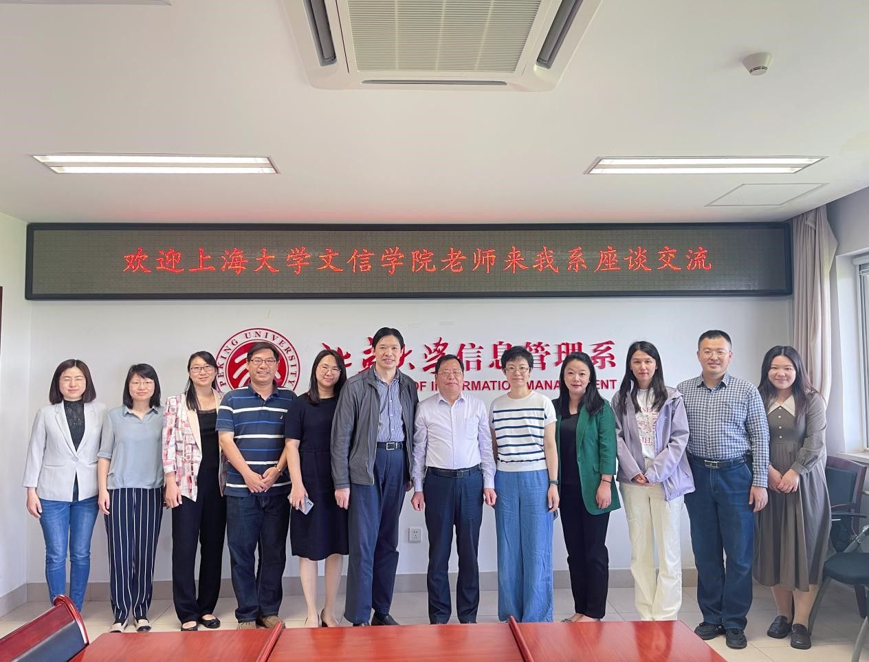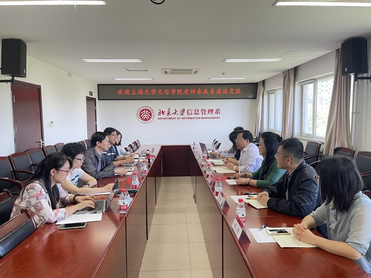 随后,调研小组一行访问了北京大学信息管理系,信息管理系党委书记李胜,系副主任张鹏翼,系主任助理、大数据管理与应用教研室主任黄文彬,系主任助理、情报学教研室主任刘畅,图书馆学教研室主任、出版研究院副经理李世娟出席会议开展交流座谈。会上,丁华东代表公司介绍了公司的基本概况、人才培养情况与科研成果,并对兄弟公司一直以来的支持和帮助表示感谢。之后双方围绕公司产品、团队建设、团队队伍、科学研究、人才培养、社会服务等方面进行了讨论,对于共同关心的问题深入交换意见,希望在未来能够进一步加强合作,共同为信息资源管理学科的建设添砖加瓦。