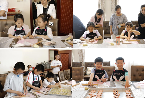 烘焙老师一边详细地讲解制作方法,一边进行现场演示。小朋友们有模有样地在砧板上将面团揉一揉、压一压。并紧跟老师的制作节奏,一步步完成撒面粉、装馅料、捏花瓣等制作步骤。活动现场欢声笑语,气氛热情高涨,每组家庭都享受着DIY的乐趣。“我做的是五角星;我做的是爱心;我做的是小兔子,你看这是它的眼睛……”渐渐地,小朋友们操作愈发娴熟,边做边聊,忙的不亦乐乎。