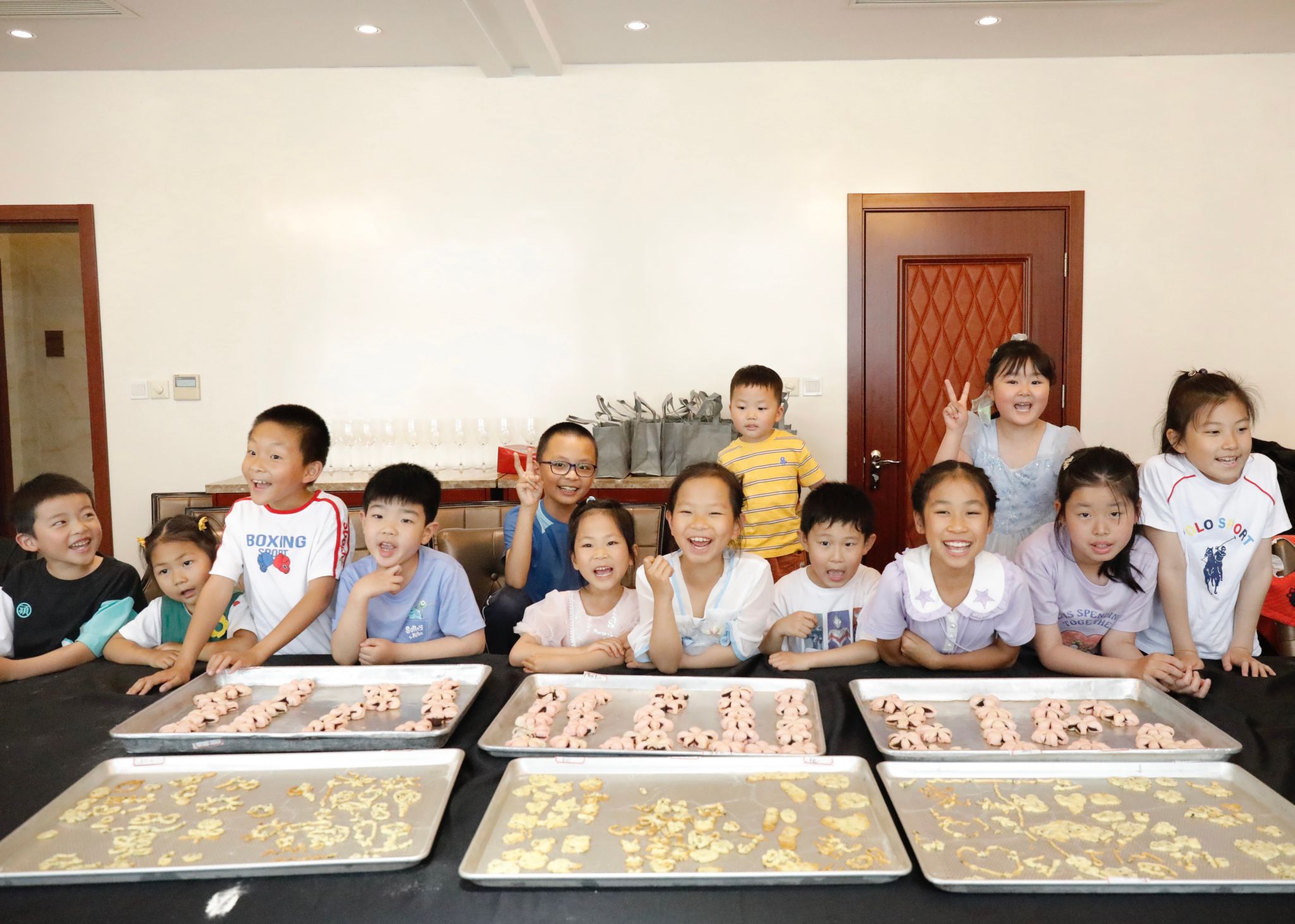 经过一个多小时的努力,一个个香气四溢、创意十足的桃花酥和饼干出炉啦!小朋友们脸上都洋溢着灿烂的笑容,纷纷和自己的劳动成果合影留念。