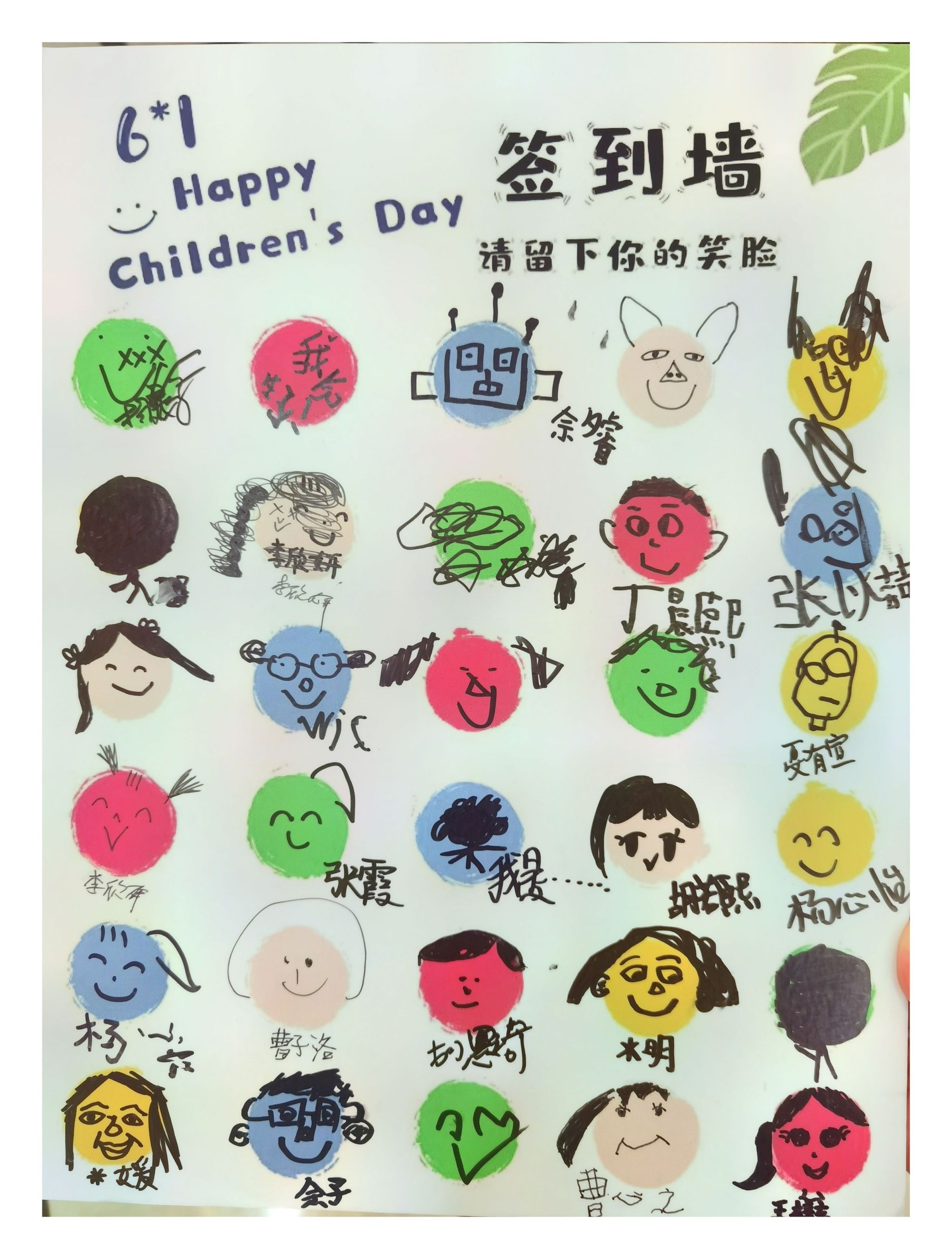 活动开始前,小朋友在签到墙上打卡签到,发挥天马行空的想象力,留下稚嫩可爱的自画像。